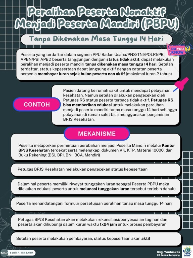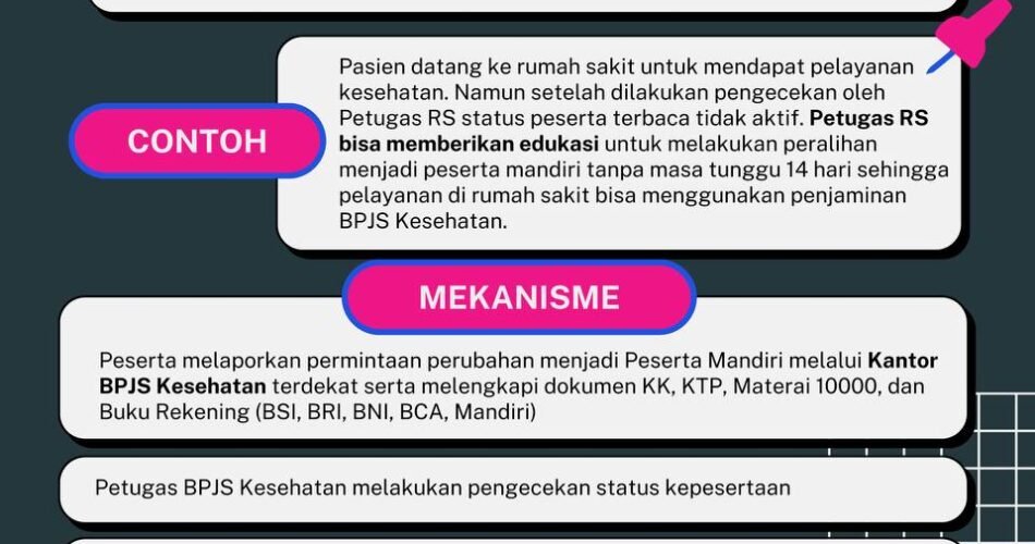 Mekanisme ini dapat mempermudah peserta jika sewaktu-waktu membutuhkan pelayanan kesehatan namun status kepesertaannya masih non aktifπŸ’